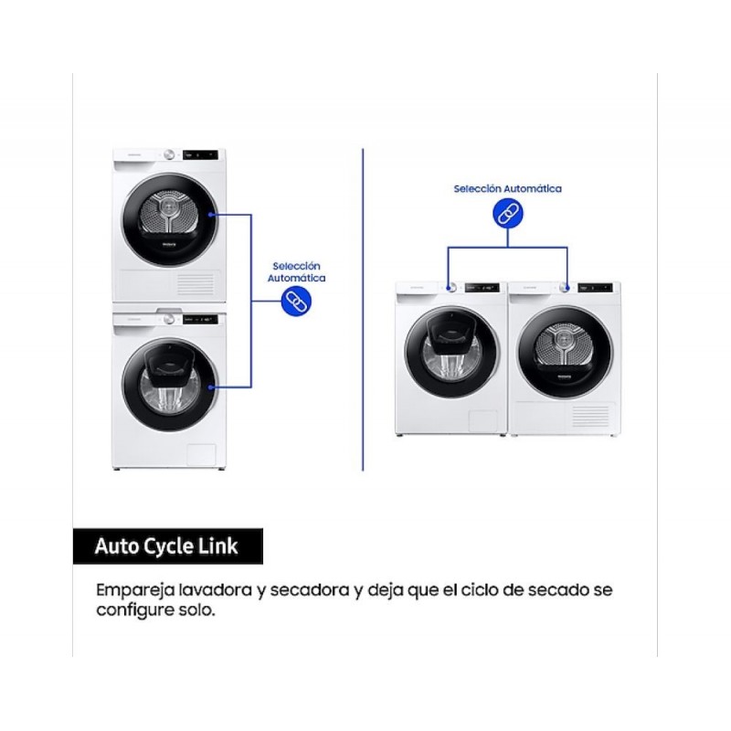 Gracias a la tecnología de secado inteligente, esta secadora recuerda tus preferencias y te sugiere los mejores programas para cada carga de ropa. Además, con la aplicación SmartThings de Samsung, puedes controlar y monitorizar la secadora desde tu dispositivo móvil, recibiendo notificaciones y consejos útiles.