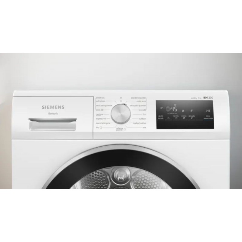 La Siemens WT45HV00ES es una secadora de libre instalación que destaca por su sistema de bomba de calor, pensado para ofrecer un secado eficiente sin dañar las prendas. Con una capacidad de 8 kg y un tambor de 112 litros, permite secar grandes cargas de ropa con total comodidad. Su diseño en color blanco y puerta con bisagra a la derecha se adapta fácilmente a cualquier espacio del hogar.