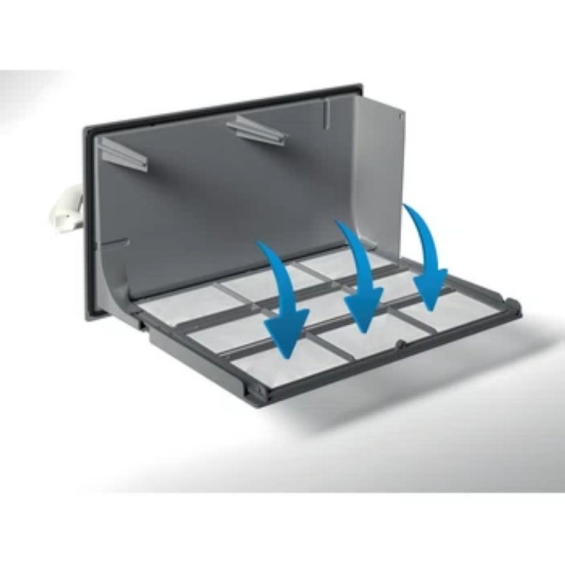 Sus dimensiones son compactas: 849 mm de alto, 595 mm de ancho y 649 mm de profundidad. Con la puerta abierta alcanza los 109,5 cm, por lo que se recomienda tener en cuenta este espacio adicional al instalarla. Su peso es de 44 kg, lo que facilita su transporte e instalación sin complicaciones.
