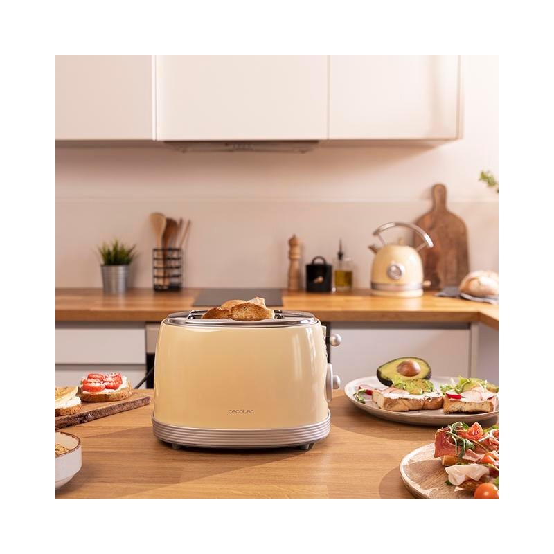 La tostadora cuenta con un un diseño de acero inoxidable lacado en beige con detalles en cromado, perfecto para combinar en tu cocina y darle un toque de estilo.