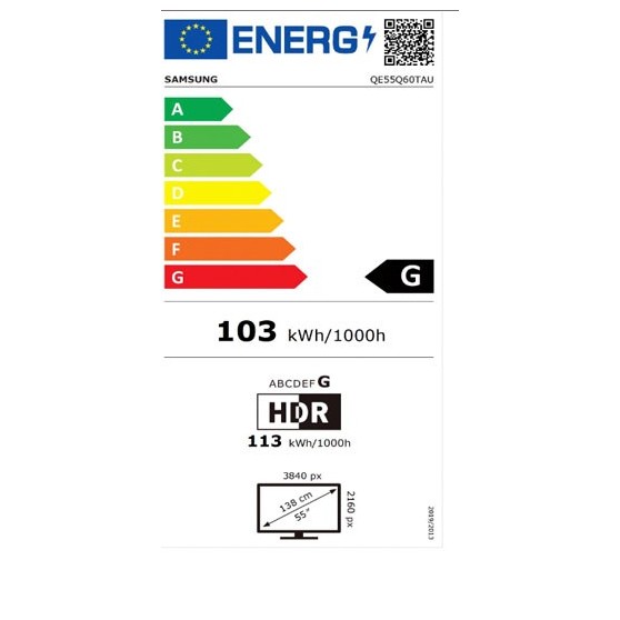 Consumo de potencia en modo encendido HDR:113 kWh/1000h